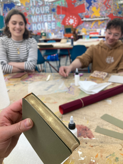 Binding Baggins is a hands-on bookbinding workshop where participants will learn to transform paperback copies of J.R.R. Tolkien's beloved classic, The Hobbit, into beautiful hardcover editions. Participants will be guided through the process of creating a new hardcover binding.